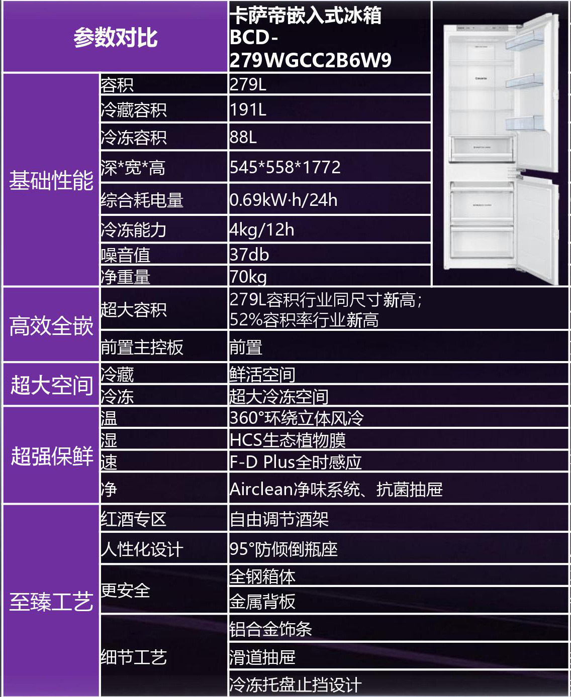 Casarte embedded refrigerator 279WGCC variable frequency air-cooled frost-free ultra-thin customization? With car built-in inlay
