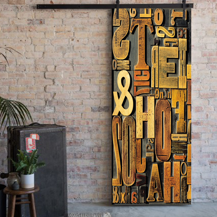 Vintage Abstract Letter Door Sticker Living Room Wooden Door Refurbished Waterproof Self Adhesive Removable Metal Industrial Style Decorative Painting