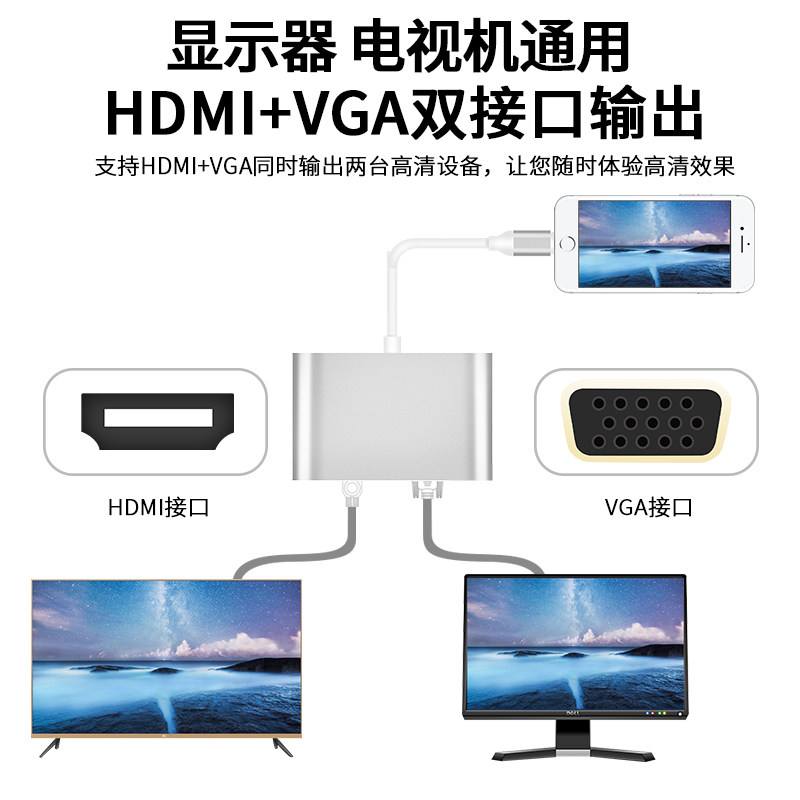 Apple mobile phone tablet to HDMI VGA converter