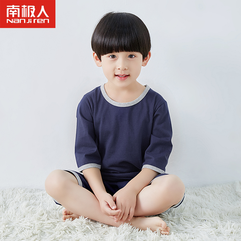 Antarctic children's pajamas autumn boy thin baby home suit cotton thin middle-aged children's five-point sleeve summer