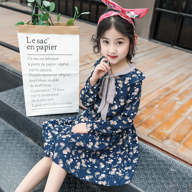Girls skirt 2021 new spring dress crushed flower dress in the big children's foreign pie long-sleeved waist chiffon fashion trend