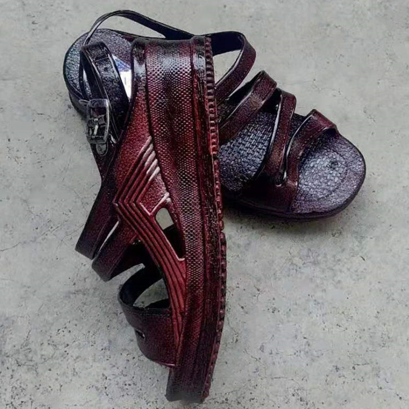 Taiwan 21CENTURY women's sandals middle-aged and elderly sandals wedge with soft bottom thick-soled elderly shoes women's buckle large size 209