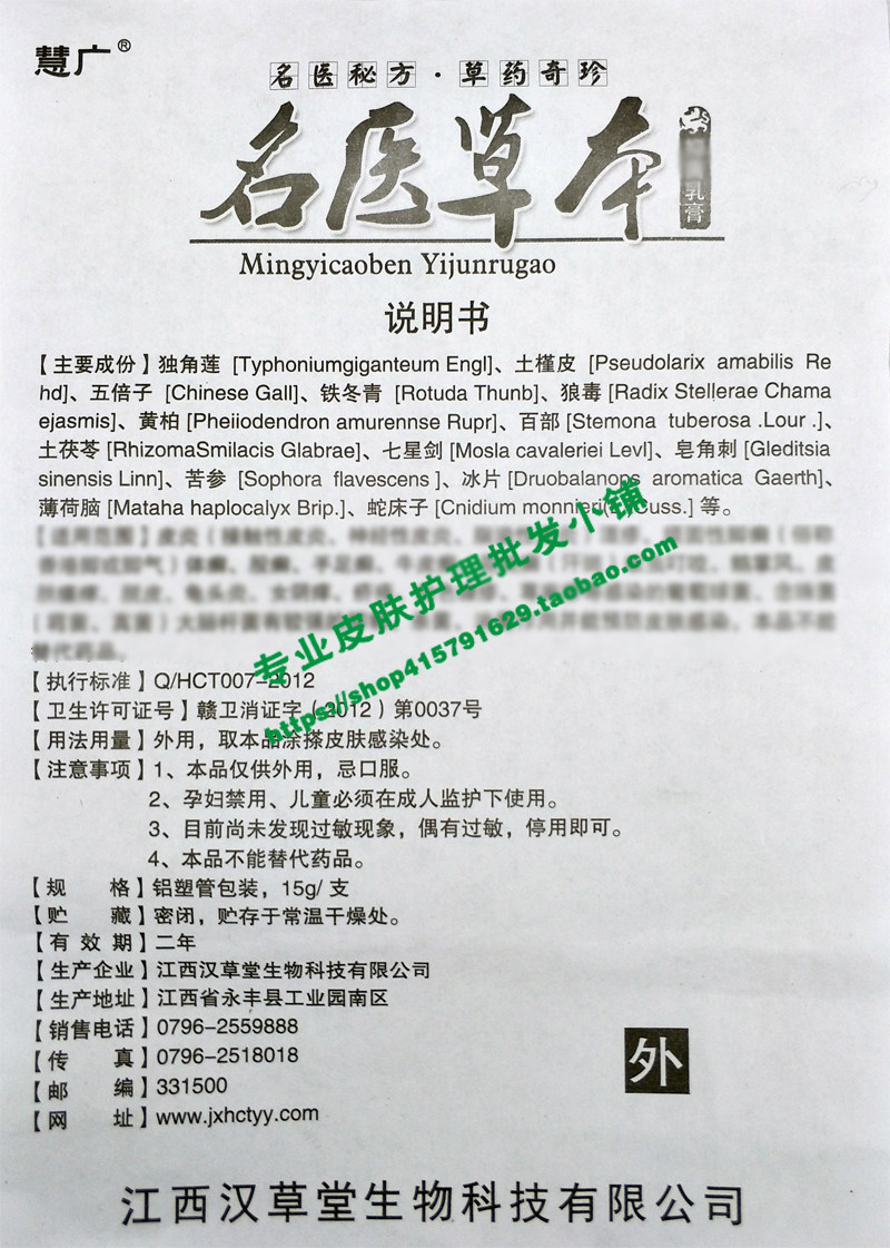 Huiguang famous doctor herbal cream herbal ointment for external use on the skin Jiangxi Hancaotang 20 sticks