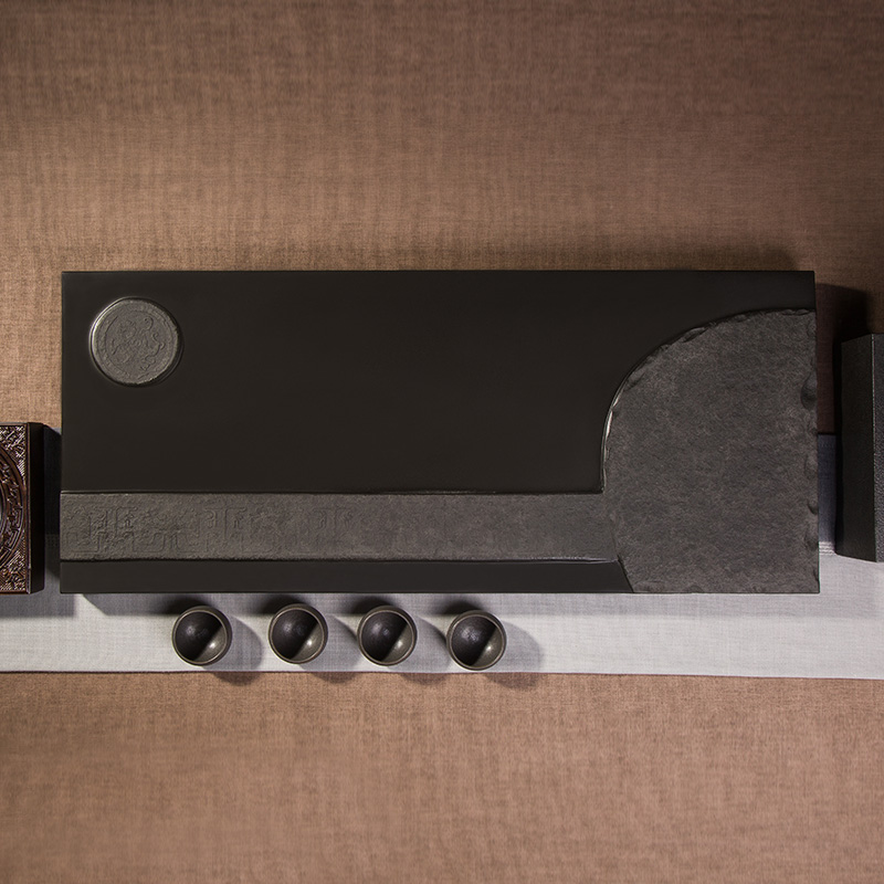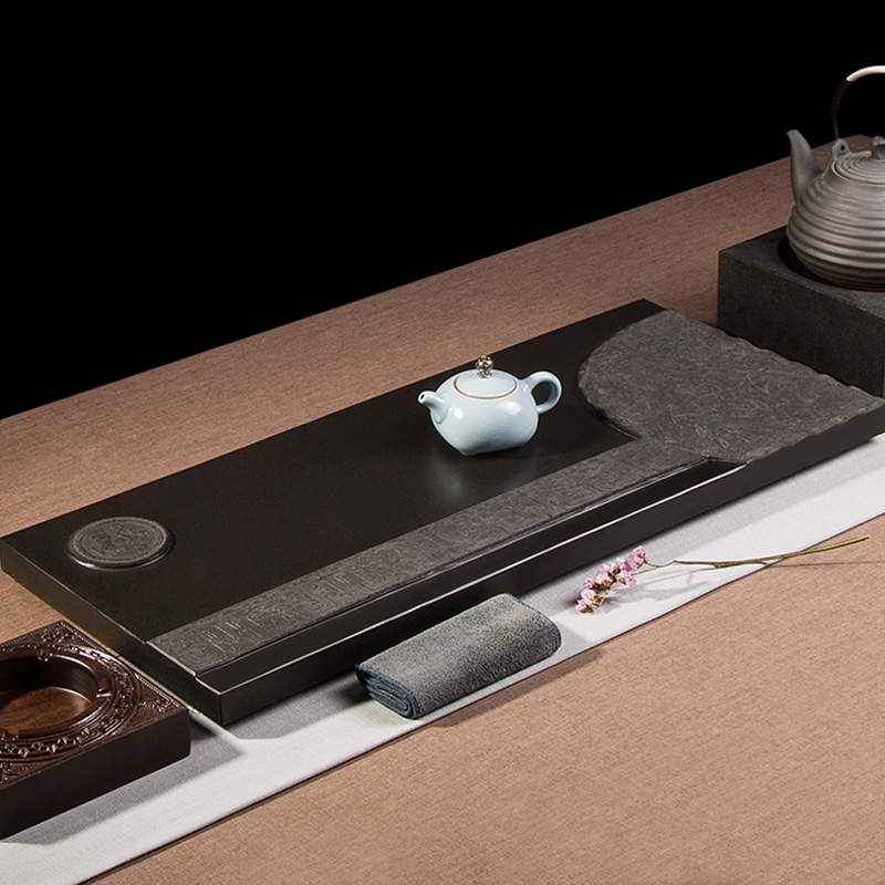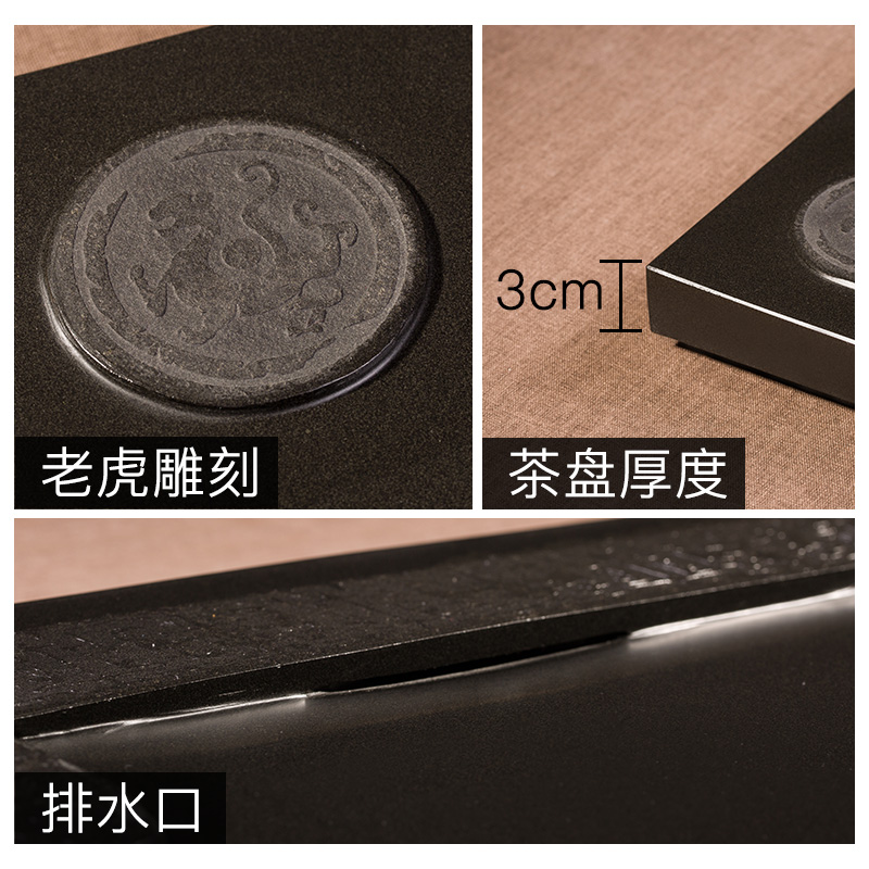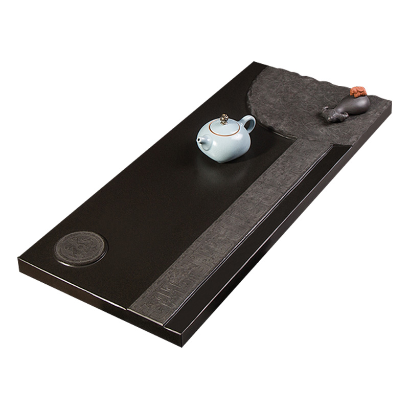 Black gold stone tea tray Natural hand carved whole household tea table Black gold stone simple creative Kung fu drainage tea sea