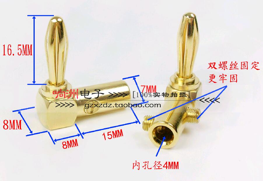 L-type six-leaf gold-plated pure copper banana plug speaker speaker wiring socket 90 degree elbow plug audio 4mm elbow