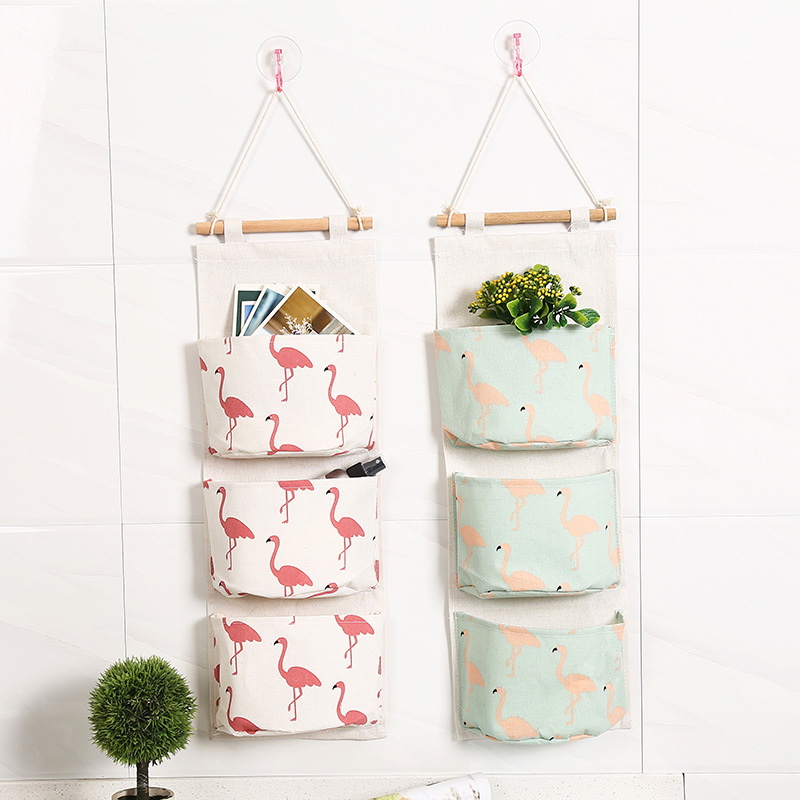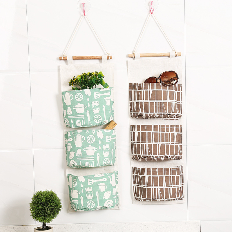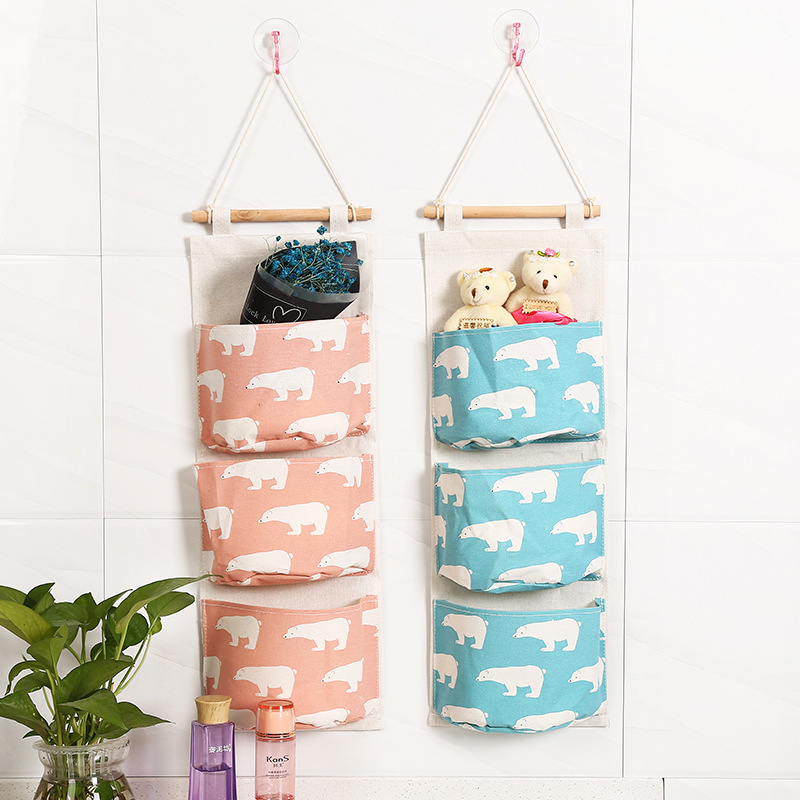 Animal Style Cotton Linen Collection Bag Three Layers Containing Hanging Bag Bedroom Door Rear Hanging Bag Multifunction Storage Hanging Bag