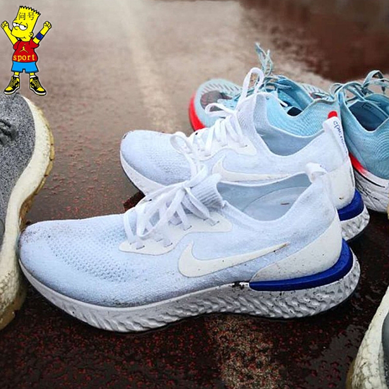 Nike Epic React Flyknit Foam Woven Pure White White Blue Running Shoes AQ0070-100
