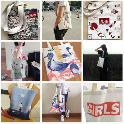 Magazine Appendix bag Japanese English letter canvas bag women's shoulder portable environmental protection bag DIY custom QT04