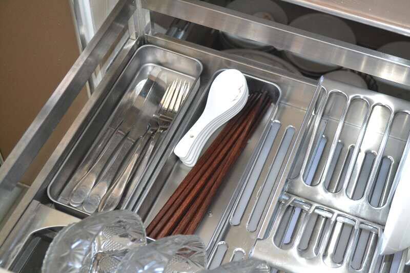 New product 304 Stainless Steel Chopsticks Case Chopstick Cylinder Disinfection Bowl Tray Cabinet Drain box Kitchen Pull Basket Soup Spoon containing box