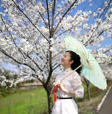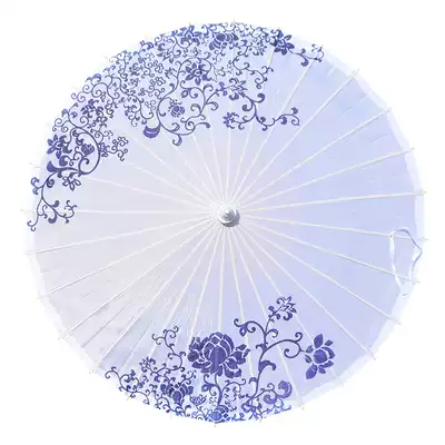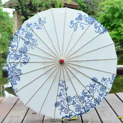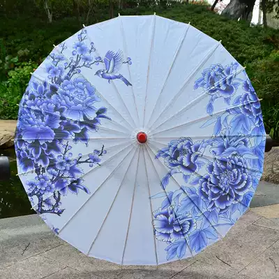 Photography Blue and white porcelain oil paper classical umbrella Mudanjiang South craft umbrella Dining room suspended ceiling decoration road with cheongsam dance umbrella