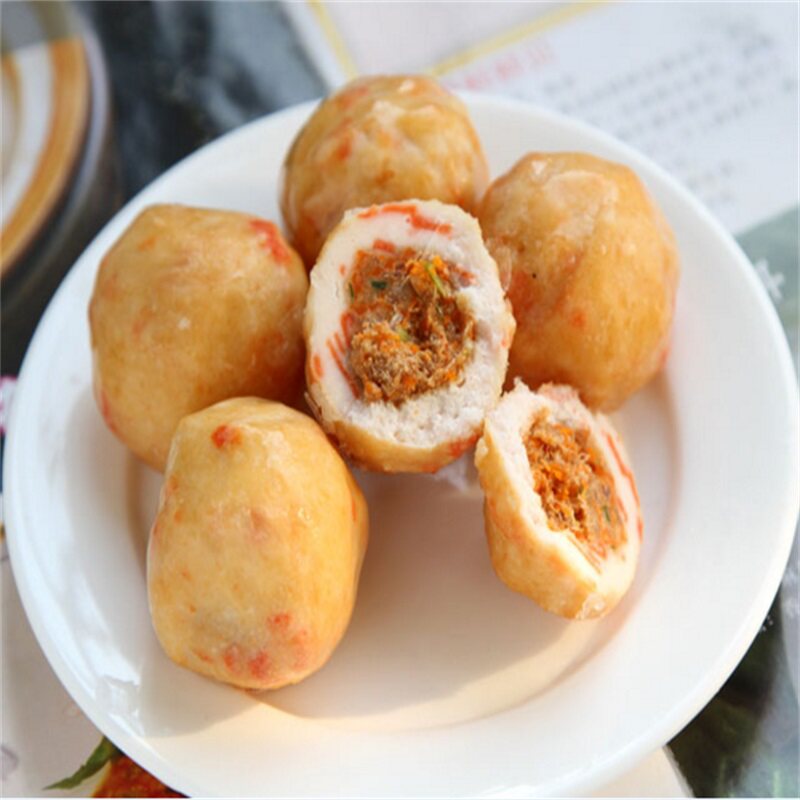 Take the stuffed fish balls with a filling.