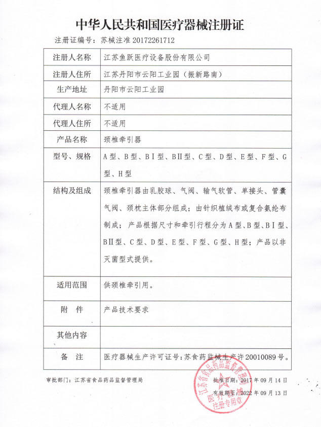 YZB Su (Town) 0017—2011 Cervical spine traction device