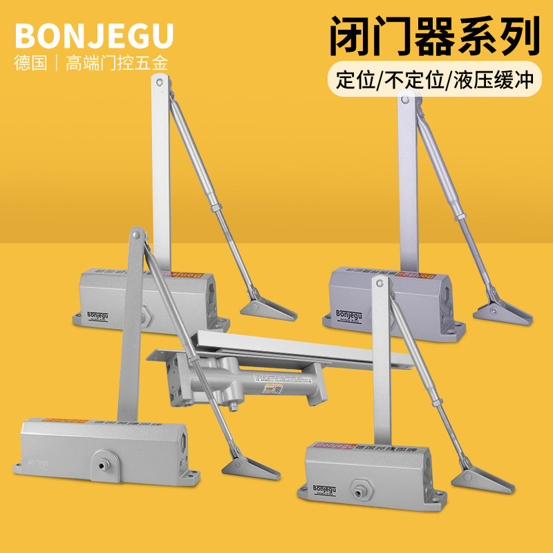 German Bangjie solid door closer hydraulic buffer closed door household multi-function load-bearing spring door matte silver