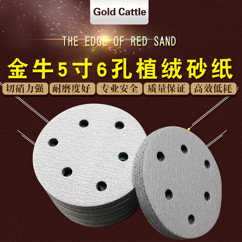 Taurus 5 inch 6 hole white sand flocking sandpaper sheet dry grinding disc sand disc gas mill vacuum grinding polishing sand paper