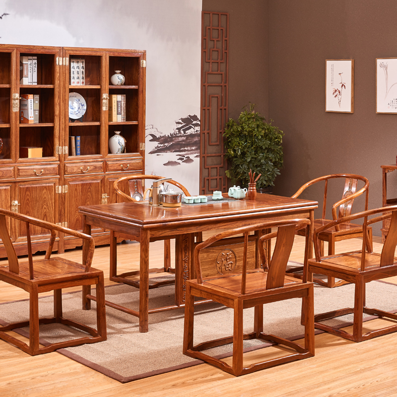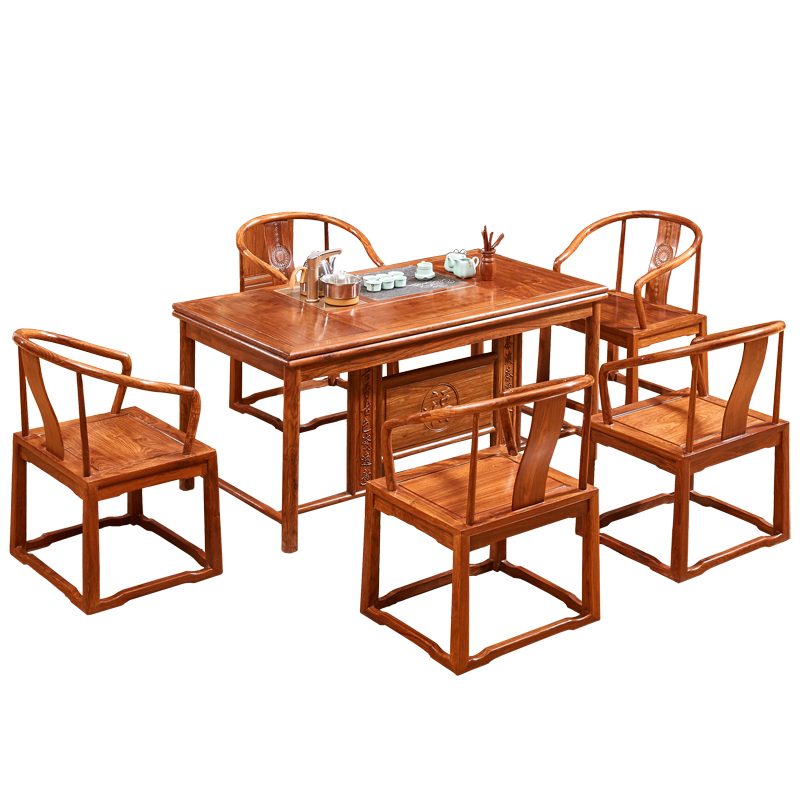 New Chinese red wood tea table Gongfu tea a few logs small tea table chair combined solid wood furniture African pear wood tea table
