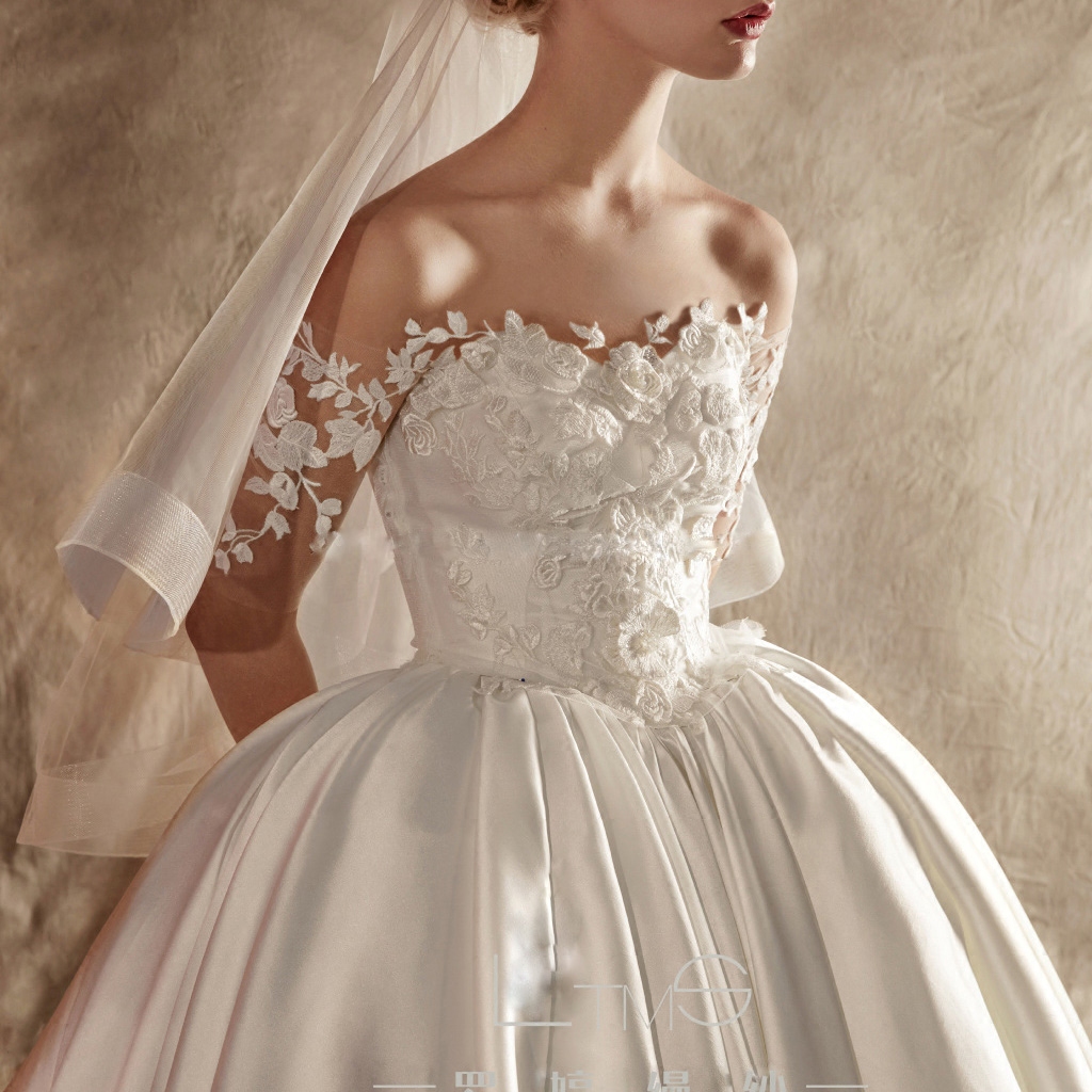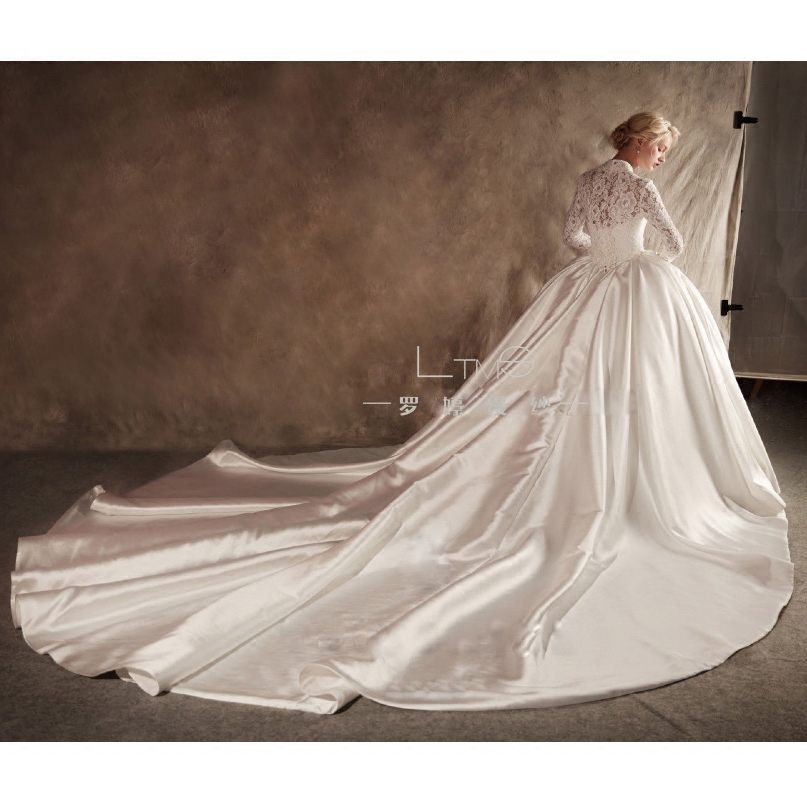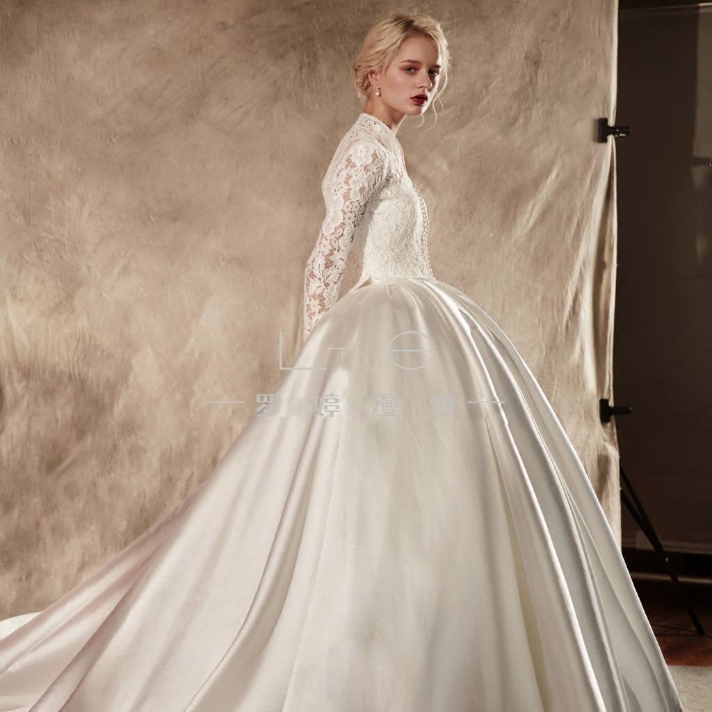 Large trailing satin bride wedding dress 2022 new palace retro slim slim tube top with lace coat