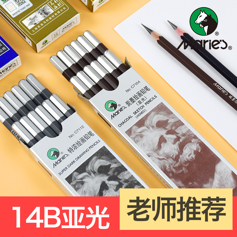 Marley brand sketch pencil set Charcoal pen hard medium soft 14b art student special sketch pen 12B matt soft carbon pen drawing pencil hb artist charcoal pen soft sketch pencil