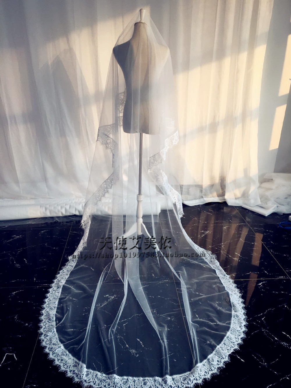 Ultra Beauty Eyelash Lace Bride Wedding Soft Yarn Head Yarn 3 m Long Tug Church Wedding Ceremony Trailing head yarn