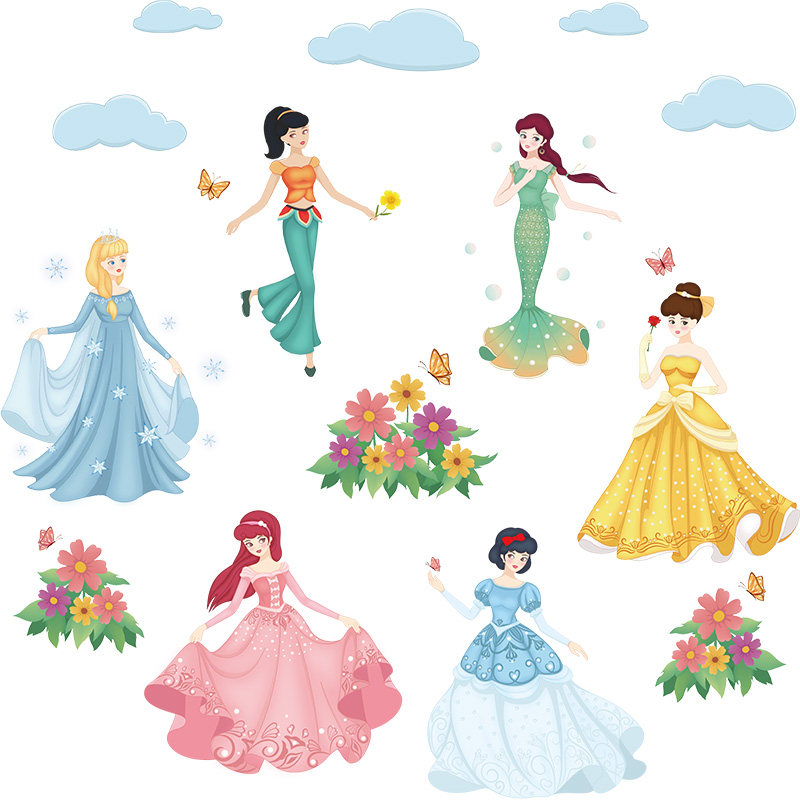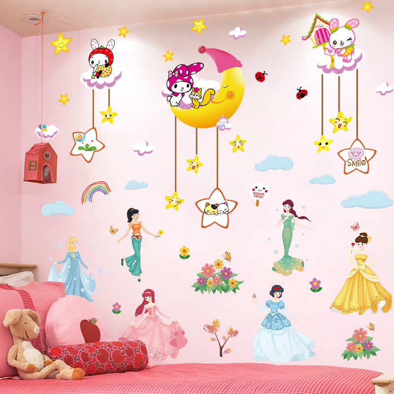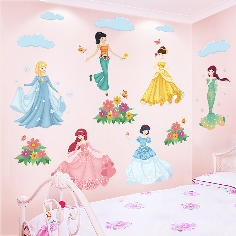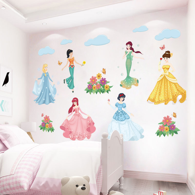 Cartoon Princess Children's Room Paper Sticker Girl Bedroom Wall Decoration Maiden Heart Room Archive Wall Stickers