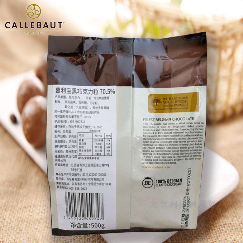 Belgian Carlibao dark chocolate bean 70 5% pure cocoa content 500g original packaging decorative baking raw material