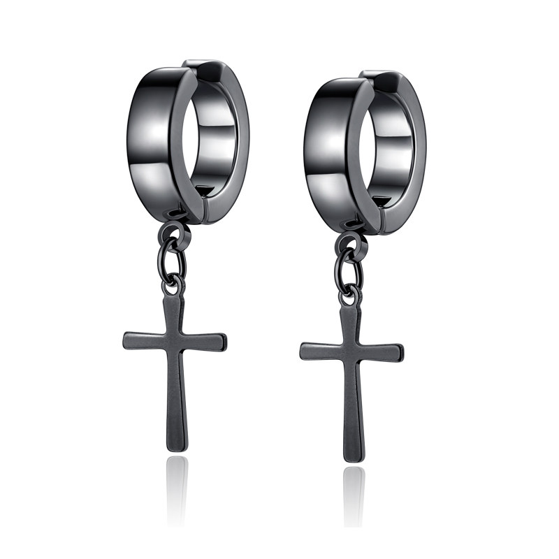 Fake stud earrings men's earless earrings female earrings cross cross ear bone clip cool dark black tide tide boys no pierce earrings
