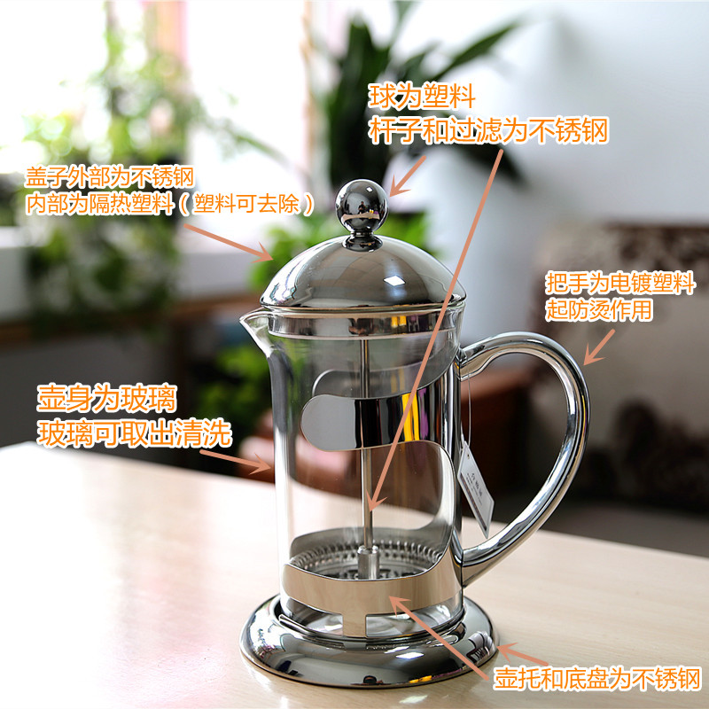 300 ml French filter pressure pot one (for one person) 600 ml French filter pressure pot one (for two persons) 800 ml French filter pressure pot one (for three persons) 1000 ml French filter