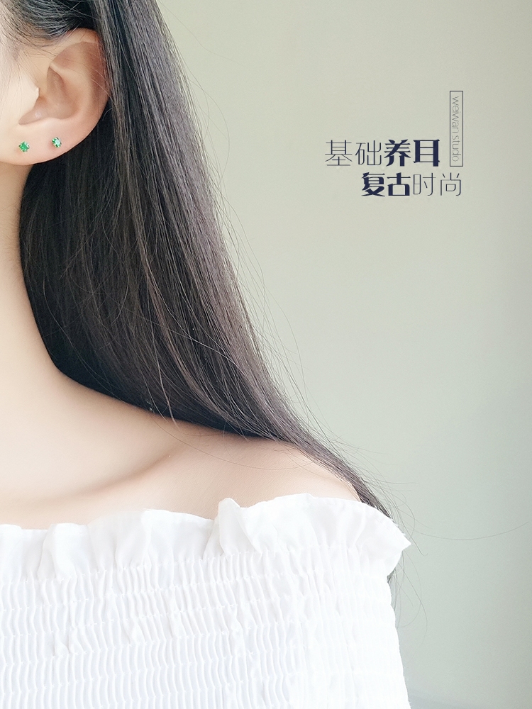 For the evening five-color gravel 925 silver ear stud female sterling silver simple cold wind small temperament raised ear pierced retro earrings