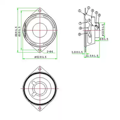 2 inch LS52N-13-R8 8 ohm 4W internal magnetic binaural bubble edge paper cone equipment PA full range speaker 5 66V