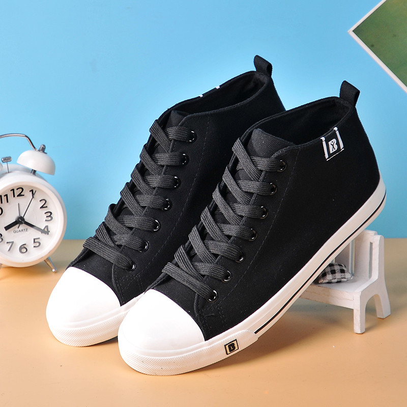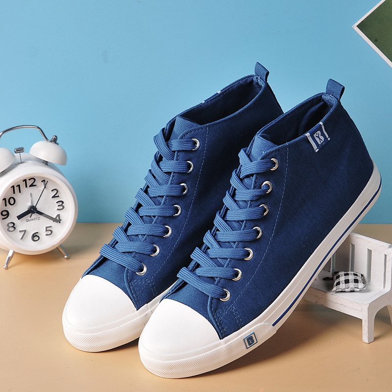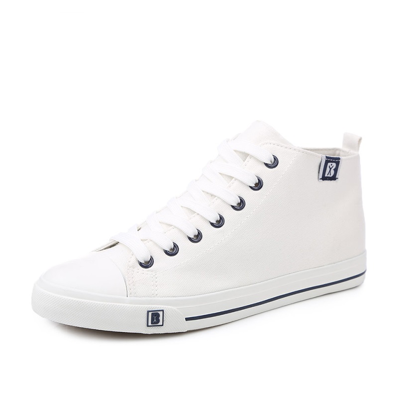 Renben spring new white high-top canvas shoes men's mid-top sneakers men's casual shoes cloth shoes couple men's shoes
