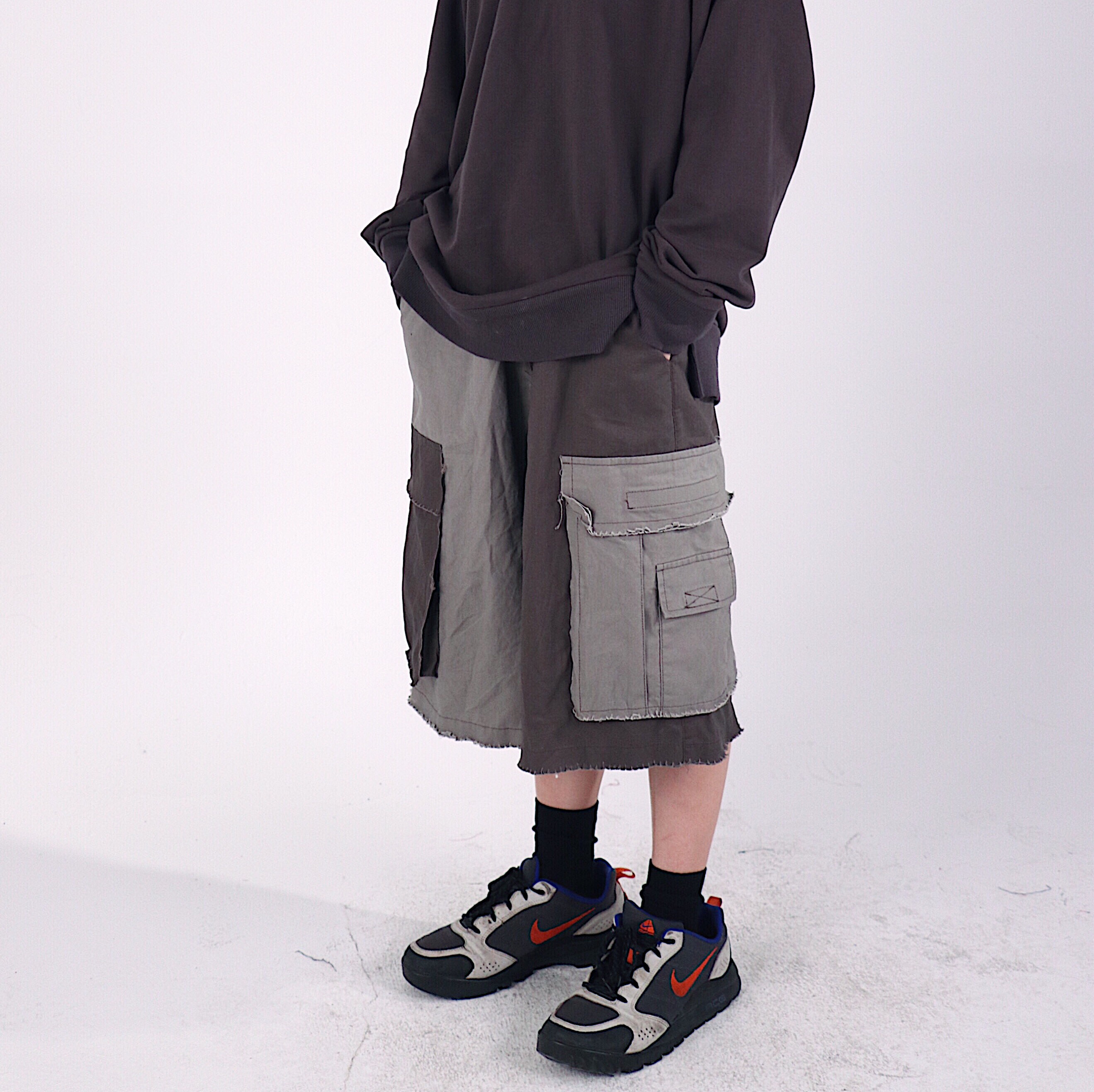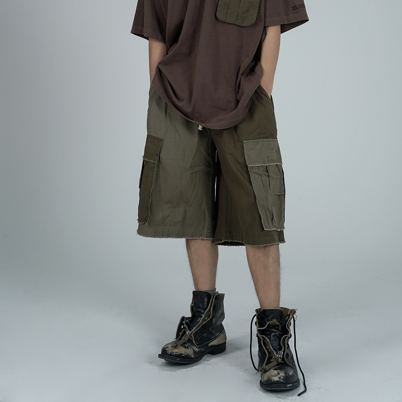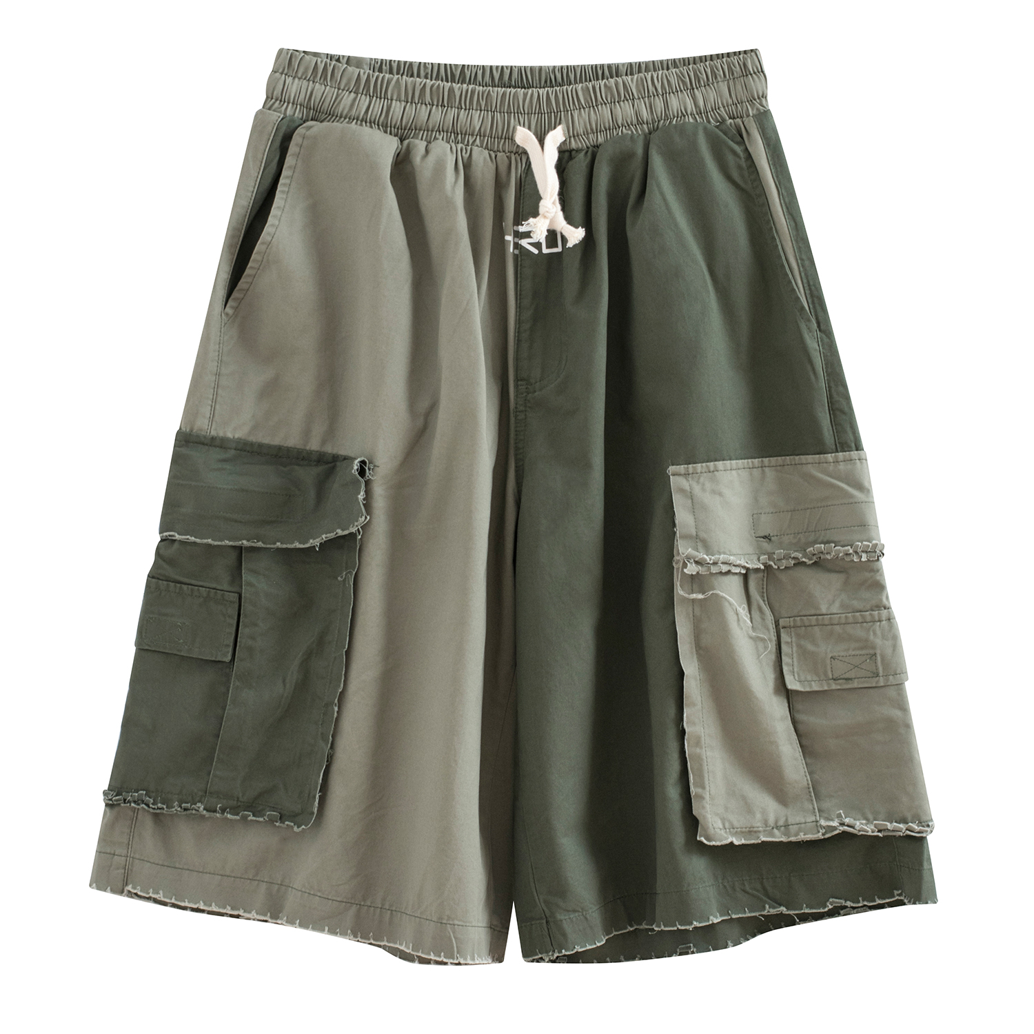 POH army green iron gray Khaki color boundless destruction profile shorts men's summer tide brand multi-color into the five-point pants tide