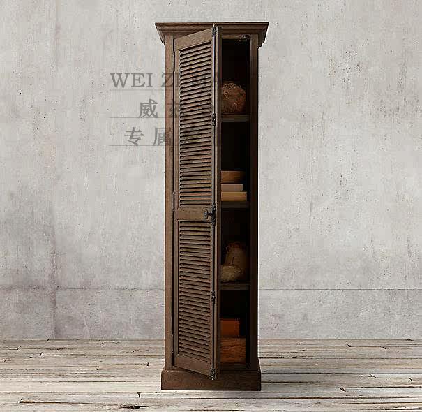 American country vintage oak old shutter door single door shoe cabinet living room entrance hall full solid wood storage side cabinet