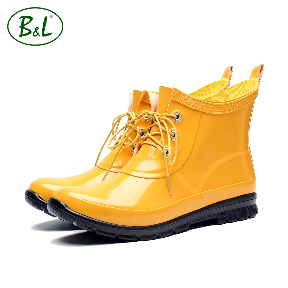 BL ladies lace-up rain shoes boots low-top tube four seasons winter non-slip waterproof rubber shoes fashion water shoes plus velvet socks