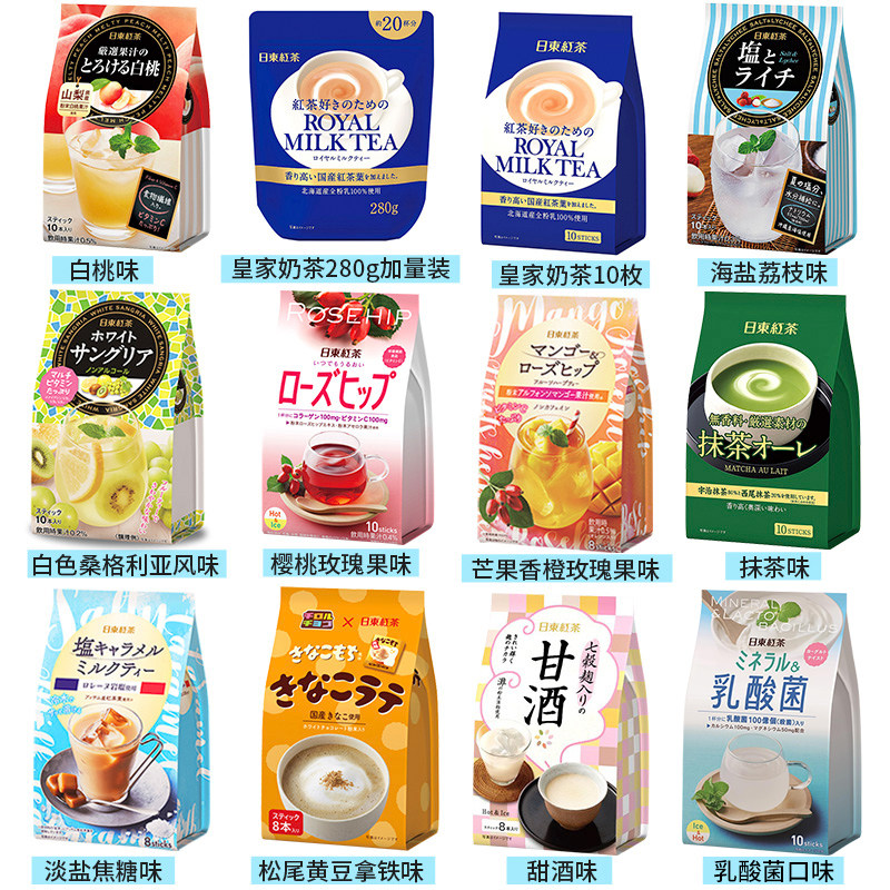 Royal milk tea 10 pack royal milk tea 280G large package summer sea salt litchi flavor 10 thick matcha latte 10 pack strictly selected white peach fruit tea 10 pack vitamin C lemon tea autumn and winter strawberry latte