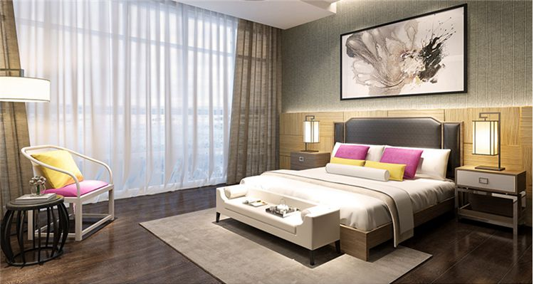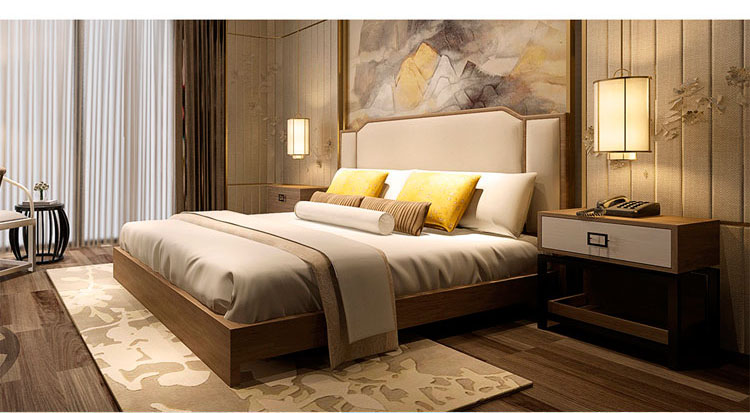 New Chinese style simple solid wood double bed 1 8 meters bedroom wedding bed model room hotel villa bedroom Zen furniture