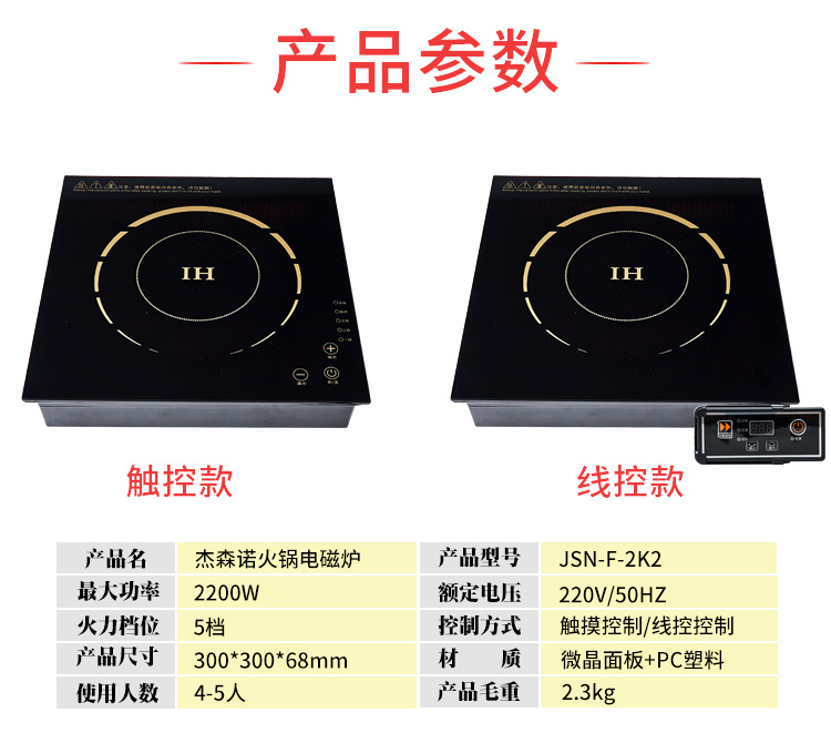 Jason Nuo high-power square induction cooker 2200W stir-fry commercial embedded hot pot shop wire-controlled battery furnace