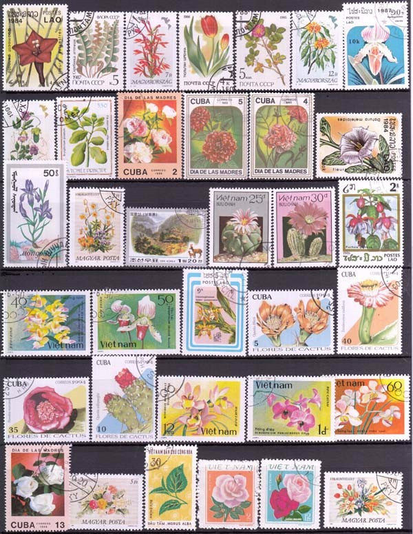 Flower Topic Foreign Cover Stamps collection of 50 different pieces