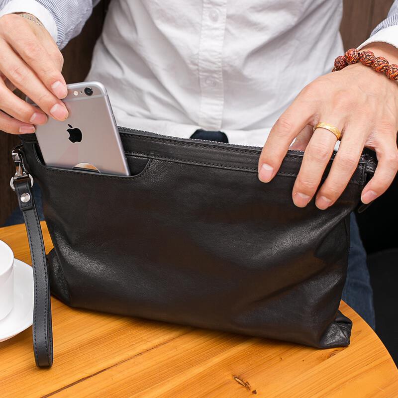 2022 New Men's Handbags Genuine Leather Soft Leather Large Capacity Business Upscale Light Lavish Hands With Bag Casual Envelope Wave