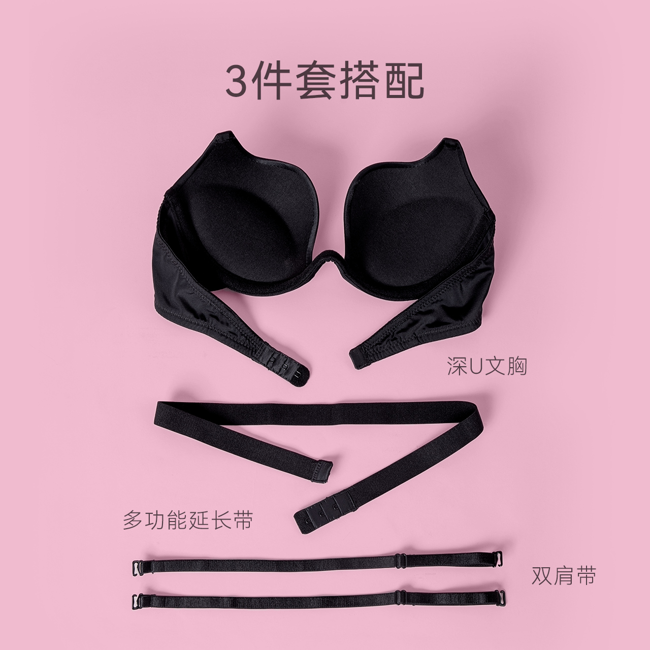Miss Bobo's beautiful back small chest thickened deep V gathered big backless bra bra invisible underwear women's cross belt summer