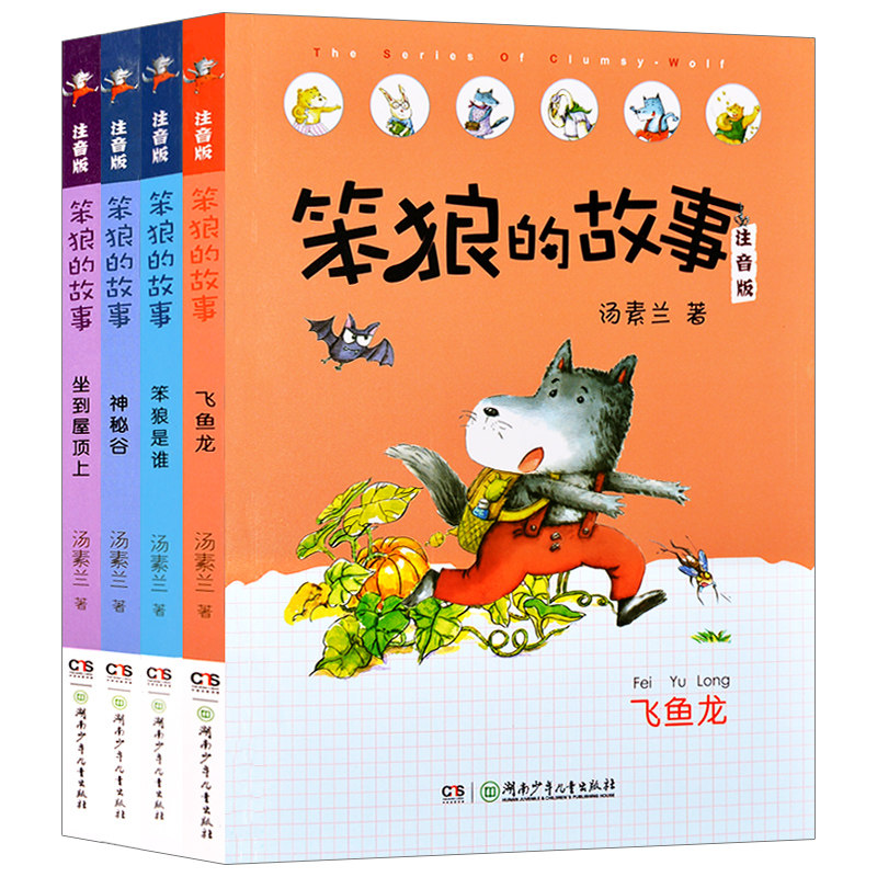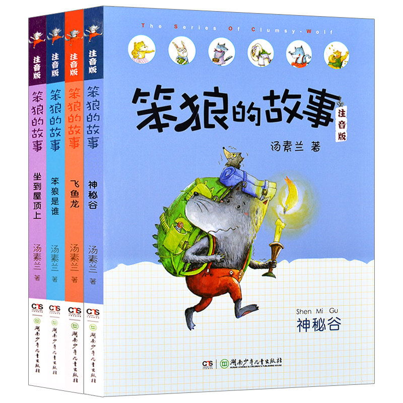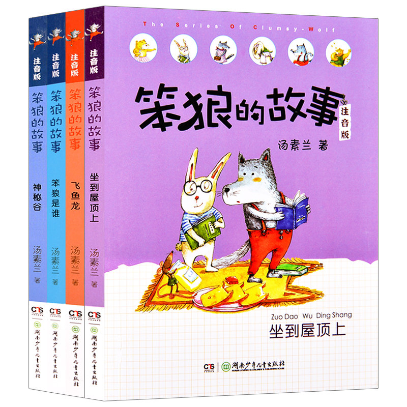 The story of the stupid Wolf Zhuyin edition 1-4 All 4 books Fairy tale book Who is the stupid wolf Flying fish Dragon sitting on the roof Mystical Valley Tang Su Lan Classic works 6-9-12 years old Primary school 12345