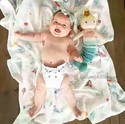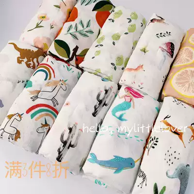 INS custom summer small fresh hand-painted wind bamboo cotton yarn cloth towel multifunctional newborn swaddling towel blanket quilt