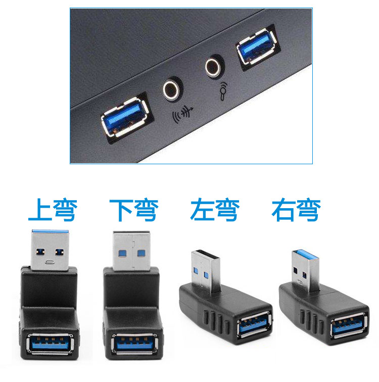 USB 3 0 90-degree adapter extension cord lower left and right elbow 90 degrees L type right angle USB port revolution mother