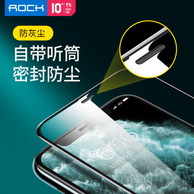 ROCK Lock Apple 13 tempered film iPhone12 dustproof 13ProMax mobile phone protective film XsMax full screen coverage XR Anti blue light anti drop HD 13Pro full
