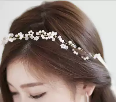 Korean fairy crystal pearl hair band Long hair streamers Japanese and Korean wild headdress Hair accessories Hair band necklace dual-use