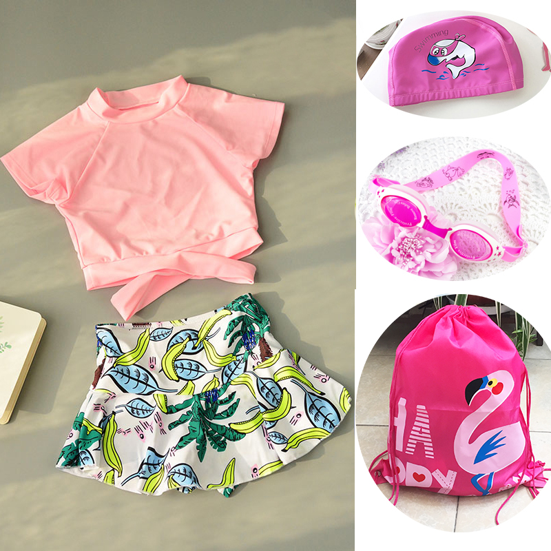 Banana leaf swimsuit banana leaf swimsuit Princess swimming goggles dolphin hat bag banana leaf swimsuit waterproof dolphin swimming cap banana leaf swimsuit pink swimming goggles dolphin hat bag banana leaf swimsuit pink swimming goggles