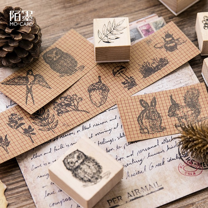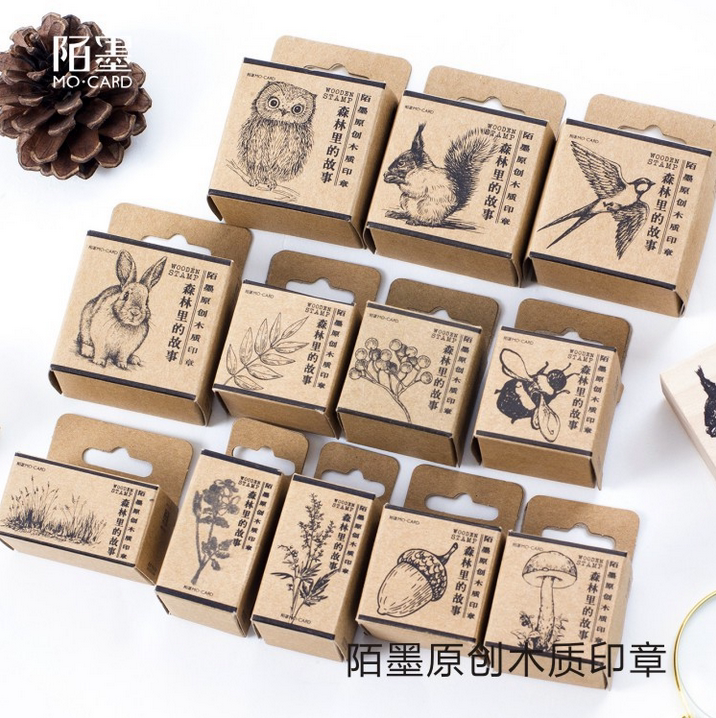Stranger ink wood seal forest story animal wood rubber Mori hand account album diary decoration DIY