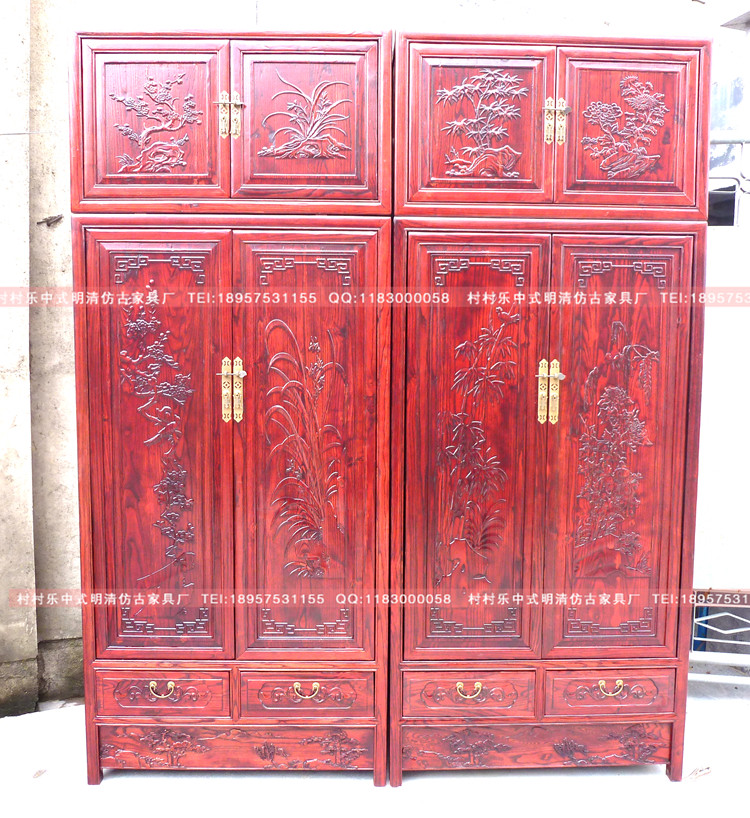 Chinese imitation classical safflower pear chicken wings sour branches solid wood landscape flowers and birds plum orchid bamboo chrysanthemum carved wardrobe top cabinet
