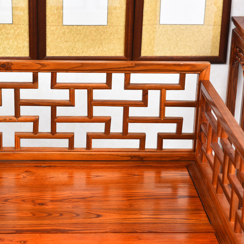 Ming and Qing Classic imitation antique red flowers pear color chicken wings ten thousand words plaid Chinese solid wood landscape grass dragon sculpted flowers