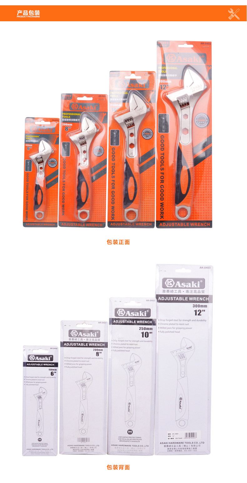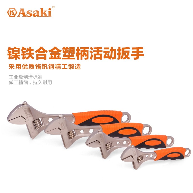 ASAKI nickel-iron alloy plastic handle movable wrench multi-use movable wrench coated movable wrench