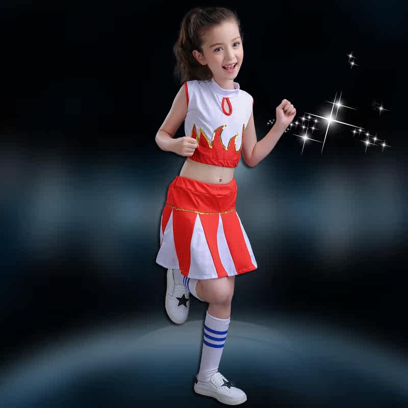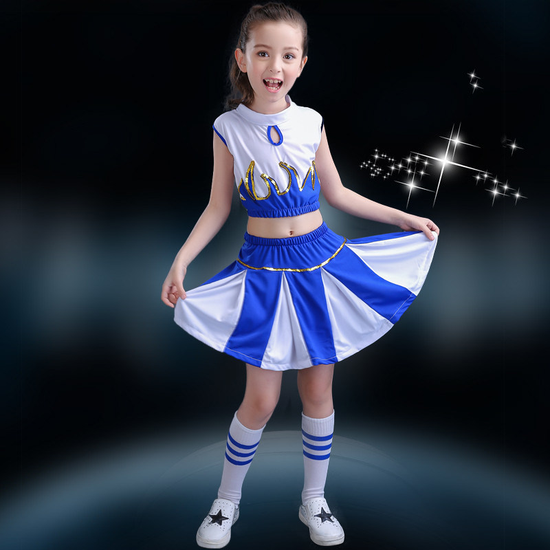 61 Children's cheerleading team acting out of costume costumes toddlers, primary and middle school students bodybuilding drills dance suit