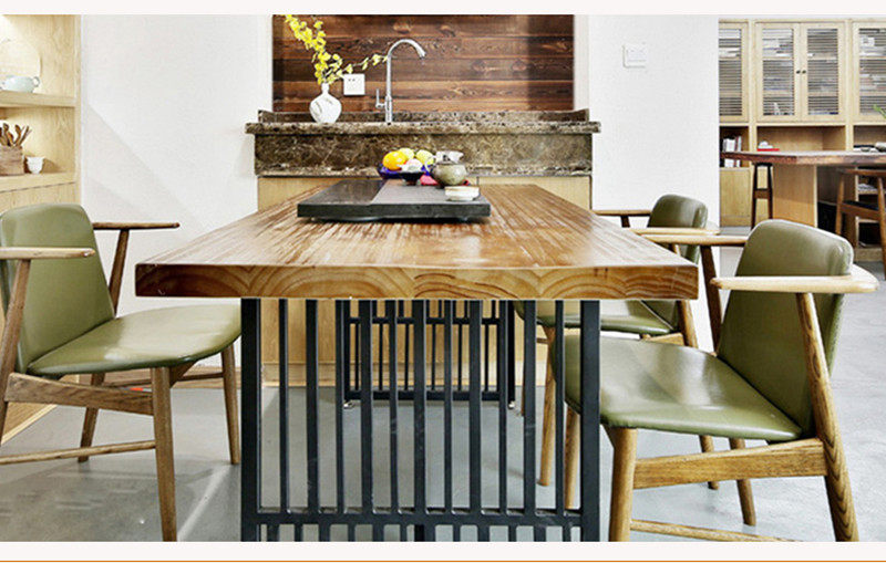 Industrial wind iron solid wood large conference table long strip simple modern rectangular loft desk American dining table